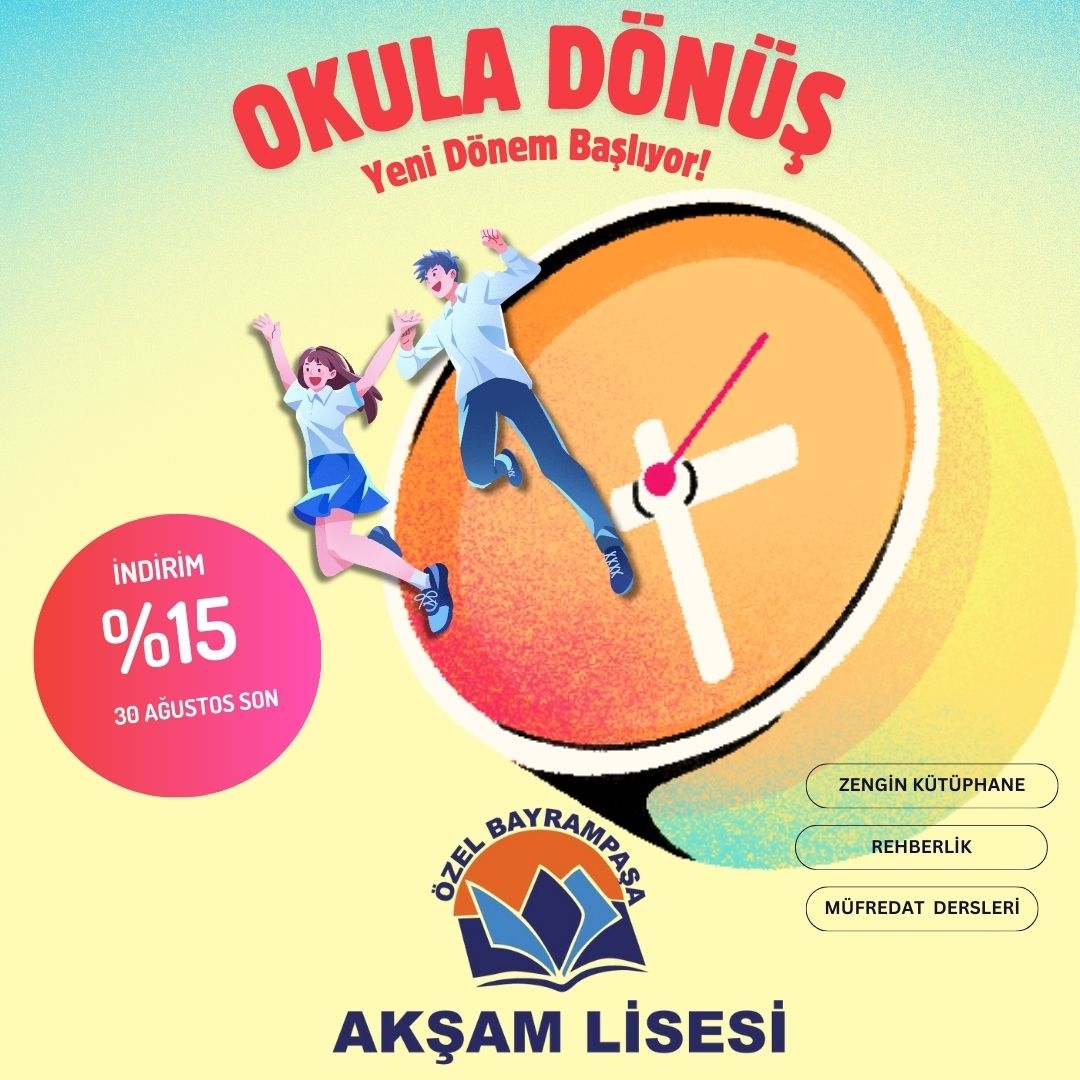 ÖZEL BAYRAMPAŞA AKŞAM LİSESİ OLARAK ,LİSE DİPLOMANIZA BİR ADIM DAHA YAKLAŞMAK İÇİN SON İNDİRİM FIRSATI. SİZ DE GÜNDÜZ ÇALIŞIN AKŞAM OKUYUN LİSE MEZUNU OLUN